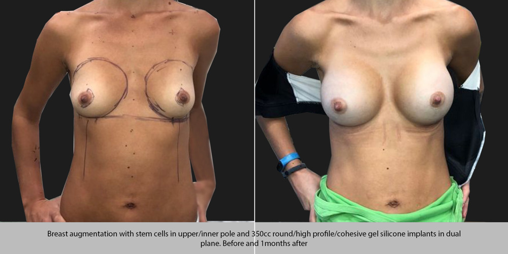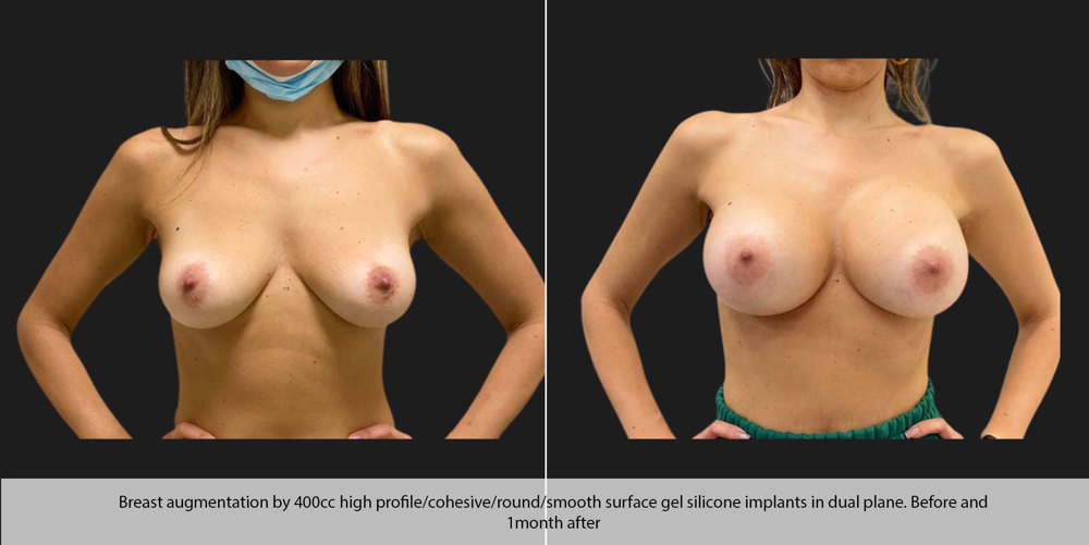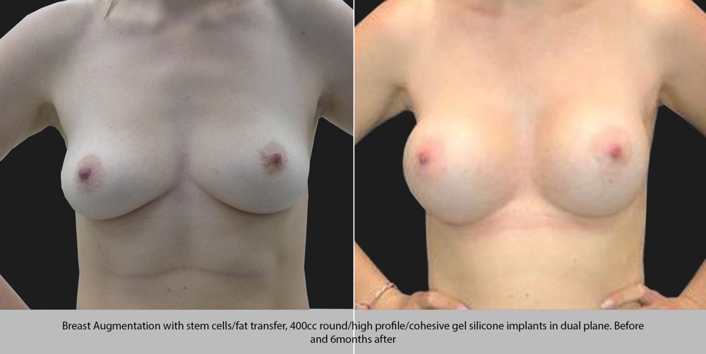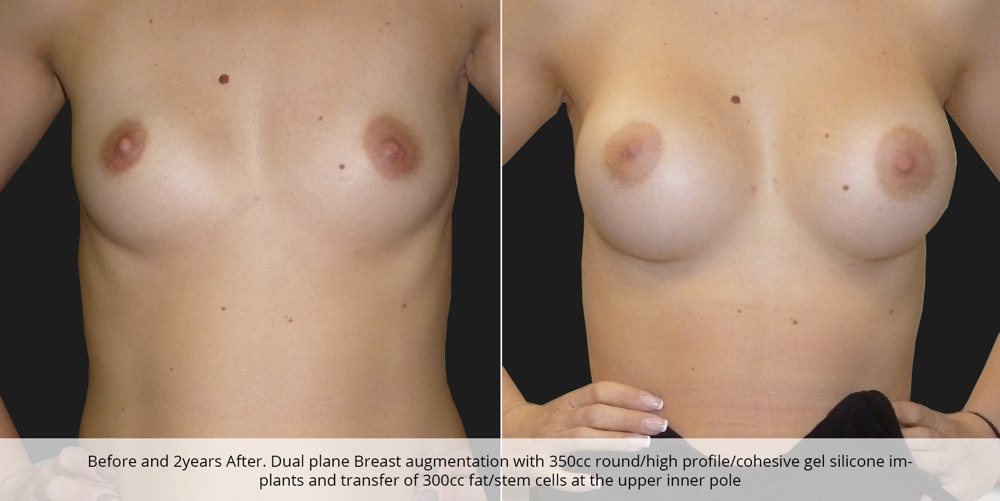 Τα ενθέματα σιλικόνης που χρησιμοποιούμε είναι νεότερης γενιάς,"cοhessive gel silicone implants", έχουν στρογγυλό ή σταγονοειδές σχήμα και δεν διπλώνουν, ούτε πτυχώνουν. Αν "ανοίξουν", η σιλικόνη μένει στην θέση της χωρίς να "χυθεί" στον μαστό. Η επέμβαση γίνεται συνήθως με γενική αναισθησία και ο χρόνος παραμονής στην κλινική, είναι το πολύ μία ημέρα. Μετά την επέμβαση, μπορείτε να επιστρέψετε στη δουλειά σας σε 4-7 ημέρες.