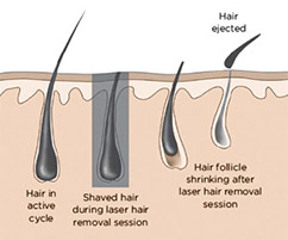 Eνας μικρός βραχίονας τοποθετείται επάνω στην επιδερμίδα, ξανά και ξανά ανάλογα με την περιοχή που θέλουμε να κάνουμε αποτρίχωση. Το μέγεθος της περιοχής καθορίζει και τον αριθμό των "παλμών" του laser. Κάθε παλμός του laser "απενεργοποιεί" ένα μεγάλο αριθμό τριχοθυλακίων. Αφαιρεί τις τρίχες ακόμη και αν δεν έχουν φθάσει την επιφάνεια του δέρματος ή "βγαίνουν" λοξά. Η έκφυση των θυλάκων γίνεται από το εν τω βάθει χόριο και το υποδόριο. Κάθε θύλακος πειέχει 2-3 στελέχη τριχών και έχει 3 φάσεις ανάπτυξης: την anagen που διαρκεί 3 χρόνια, την catagen, που διαρκεί 1-2 εβδομάδες και την telogen που διαρκεί 3-4 μήνες. Επειδή όλες οι τρίχες δεν βρίσκονται στην ίδια φάση ανάπτυξης απαιτούνται 6-8 συνεδρίες για την ολοκλήρωση της θεραπείας.